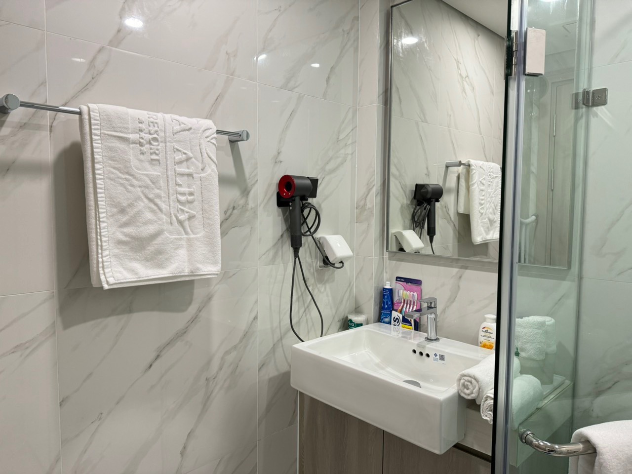 Phòng tắm: dầu gội, sữa tắm, khăn tắm, máy sấy tóc,...