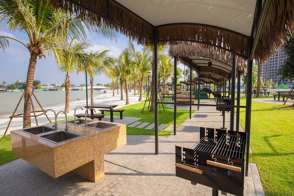 Công viên tích hợp đủ bếp nướng, bàn ăn, khu vực rửa tay,... đảm bảo đem lại một không gian tận hưởng đầy ấn tượng.