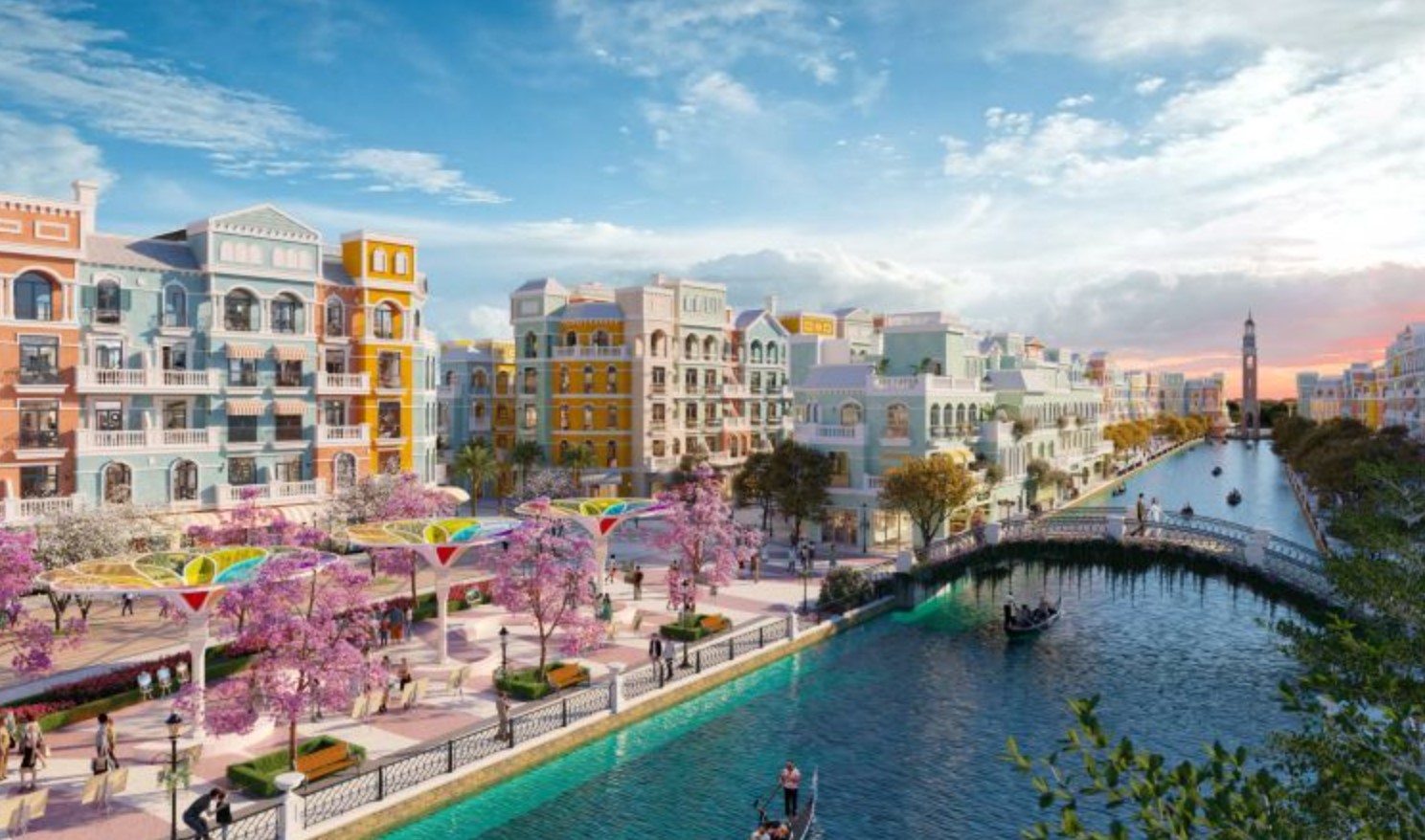 Lấy cảm hứng xây dựng từ thành phố Venice lãng mạn, Ý, Mega Grand World Hà Nội tạo nên bức tranh xinh đẹp, diễm kiều. Từ chiếc cầu với họa tiết độc đáo làm điểm nhấn, đến các Shophouse rực rỡ sắc màu, quảng trường, đài phun nước ấn tượng,...